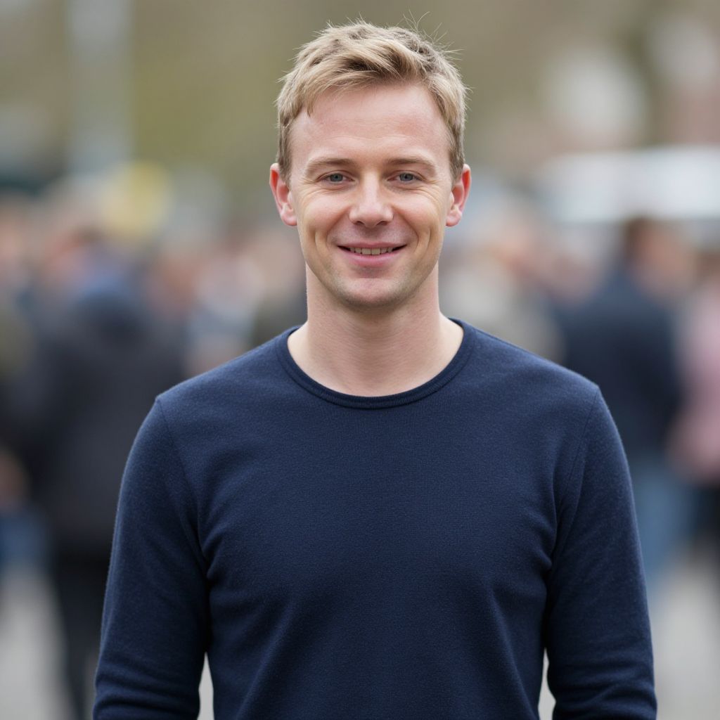 David walliams fancy dress, solo, 1boy, male focus, smile, looking at viewer, blonde hair, blurry, blurry background, realistic, upper body, old, long sleeves, outdoors