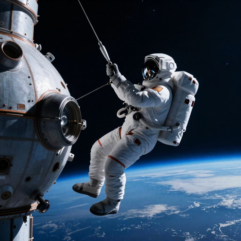 Daring Astronaut Grappling Abandoned Orbital Station