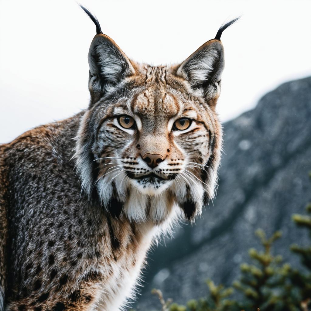 Portrait of a lynx on a mountain, transparent background, PNG format, minimum resolution 6MP, maximum resolution 70MP, max file size 40MB, isolated subject