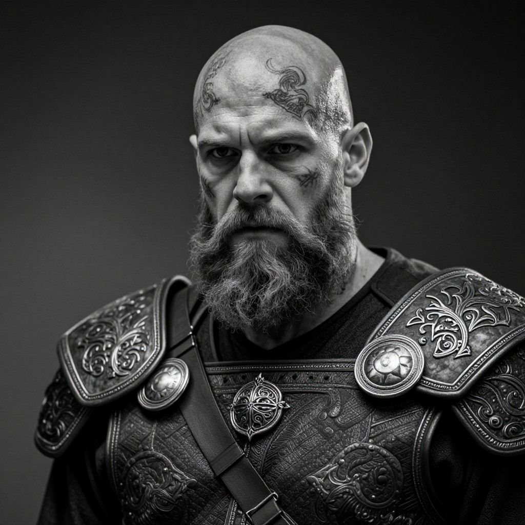 Stoic Tattooed Viking Warrior Portrait