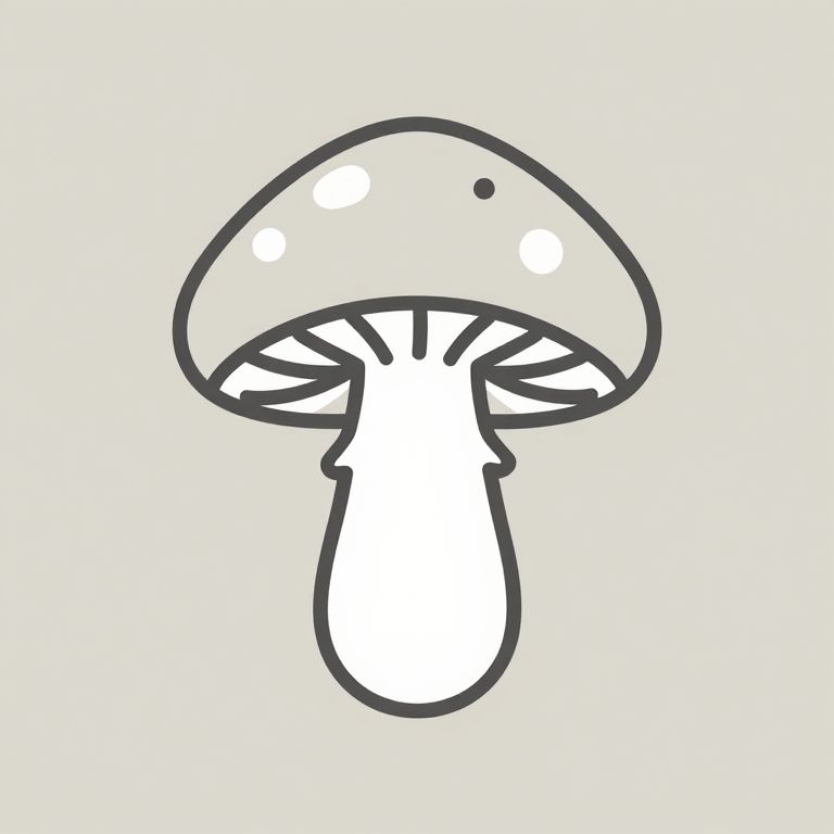 Mushroom 2d graphic, minimalist design, clean lines, muted pastel palette, single mushroom with stylized gills and stem, contemporary flat vector art