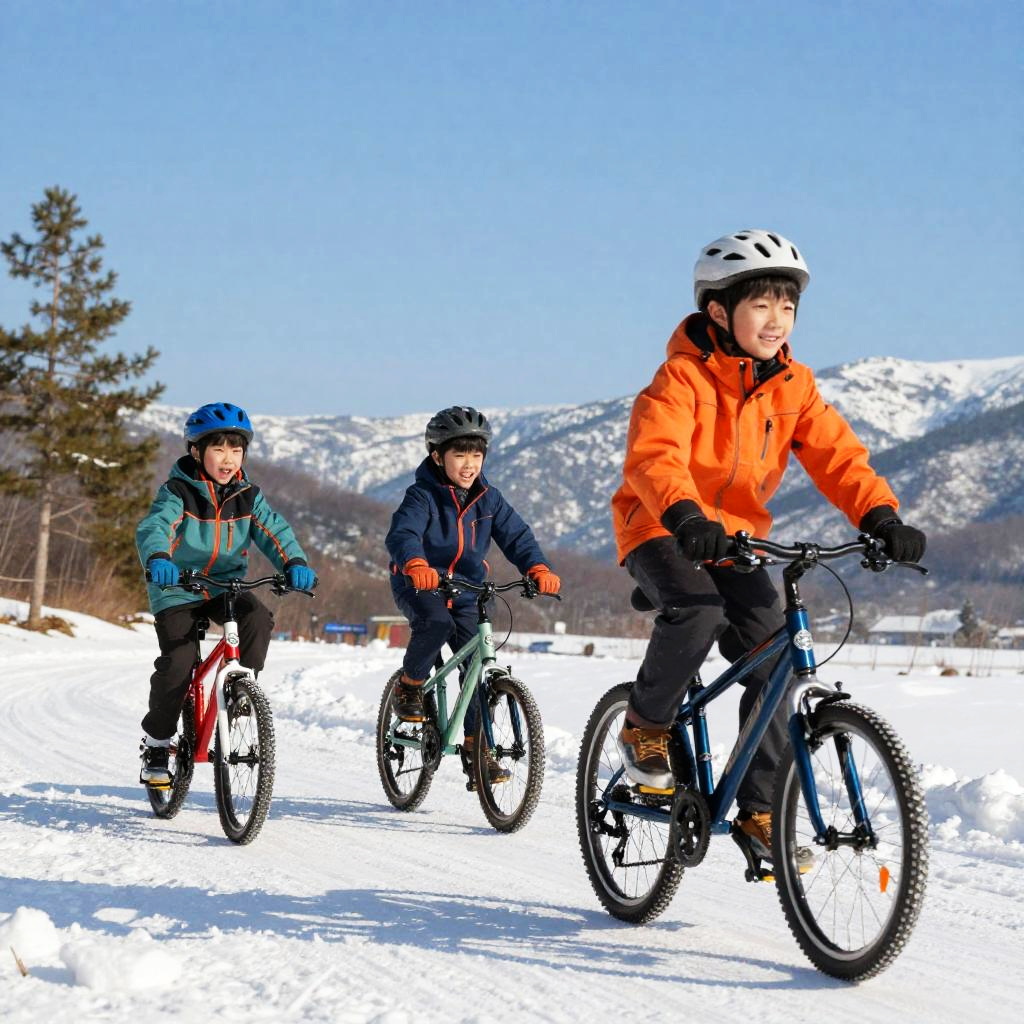 Boys Riding Bicycles in Snowy Winter