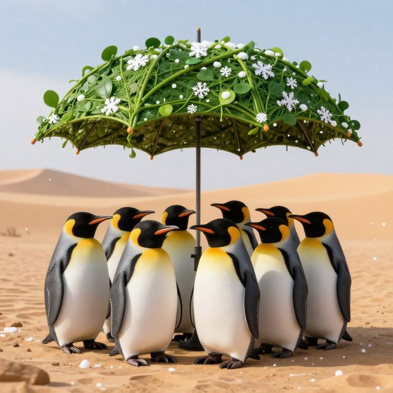 Thread surreal landscape with strawberries in the style of Sacha Goldberger, photorealistic, cinematic lighting, penguins, 8k, photo realistic,