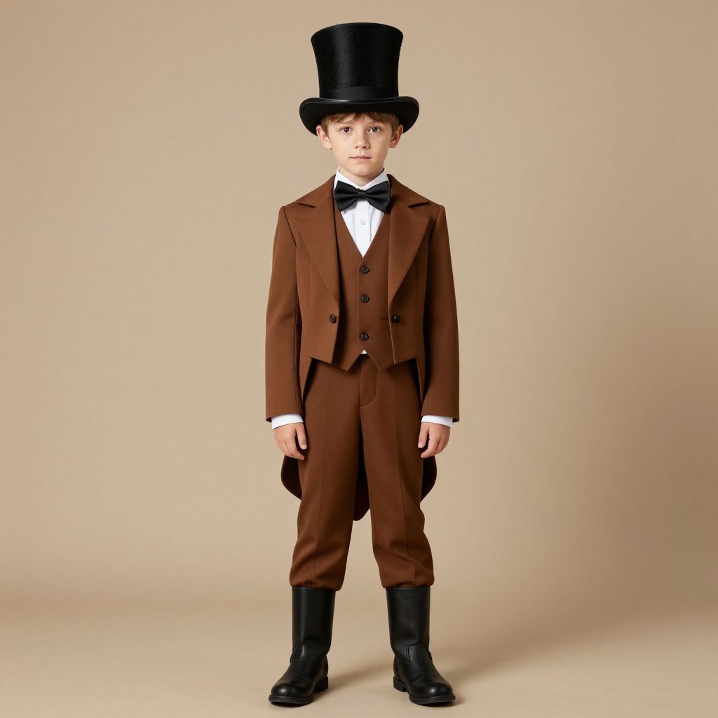 Magician costume, 1boy, male focus, hat, solo, top hat, bow, pants, bowtie, coat, boots, black footwear, black bow, standing, full body, black headwear, black bowtie, vest, old, shirt, brown coat, indoors, old man, jacket, brown pants, long sleeves, animal ears