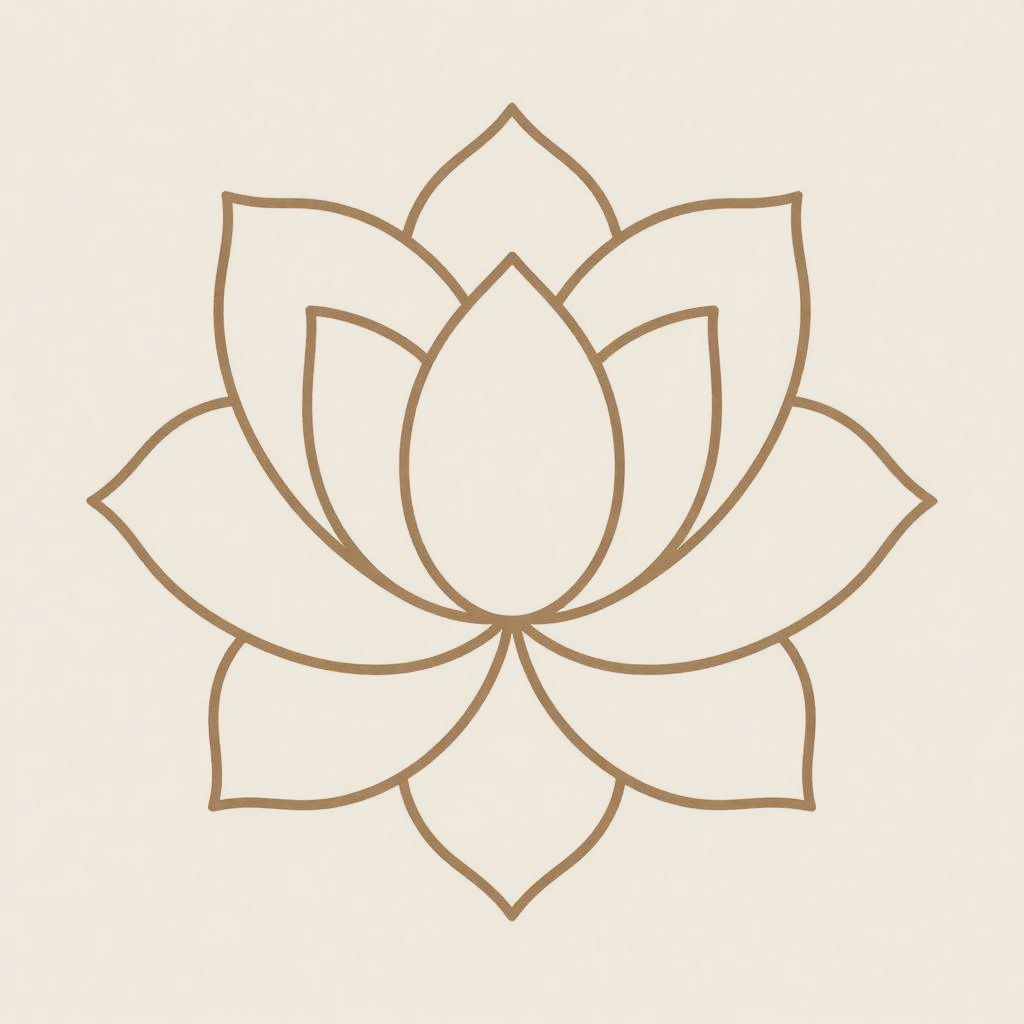 Outline simple lotus flower mandala centered in a serene, minimalist design, featuring clean lines and balanced symmetry, soft earthy tones with subtle shading, evoking peaceful meditation and spiritual harmony, digital art style with smooth curves and gentle flow.