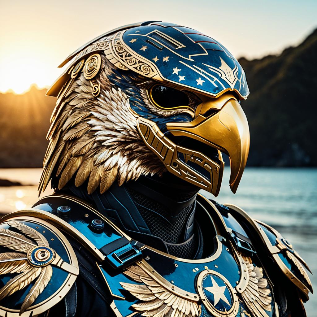 Ornate Digital Painting of American Eagle Helmet with Halo Armor