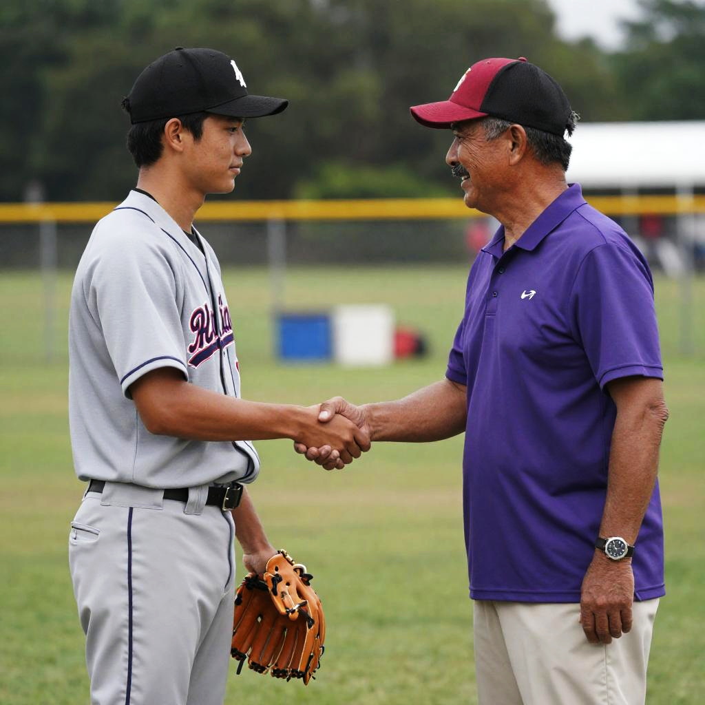 Photograph of a baseball team with 11 Asian boys, wearing yellow and white uniforms with "Bees" and "Japan" on the jerseys. Nine stand, two kneel in front. Smiling, some with arms around each other. Crowded bleachers in background.