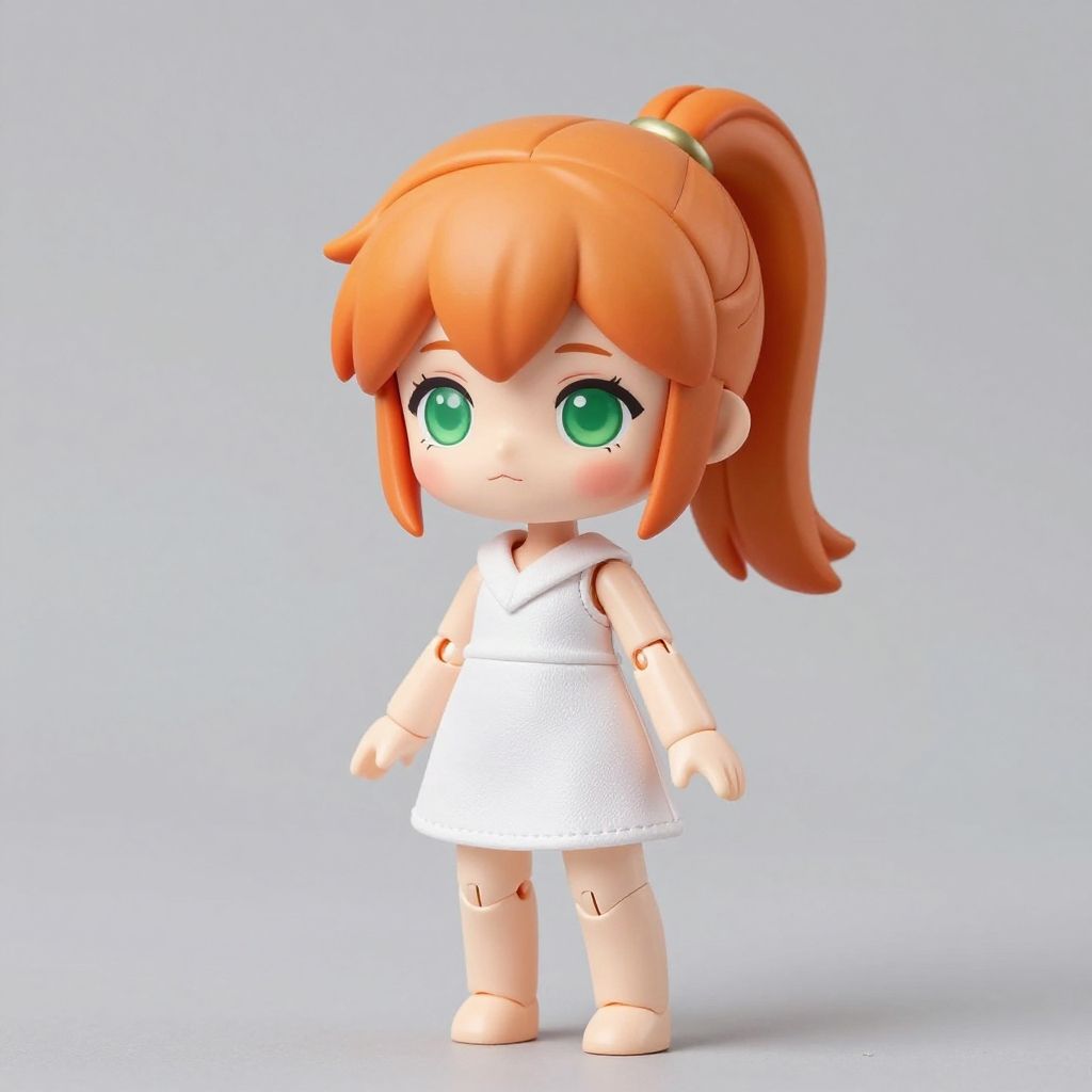 Chibi-style digital drawing of a cute anime girl with large blue eyes, long black hair, pink hat with gold bow, pink dress, and matching