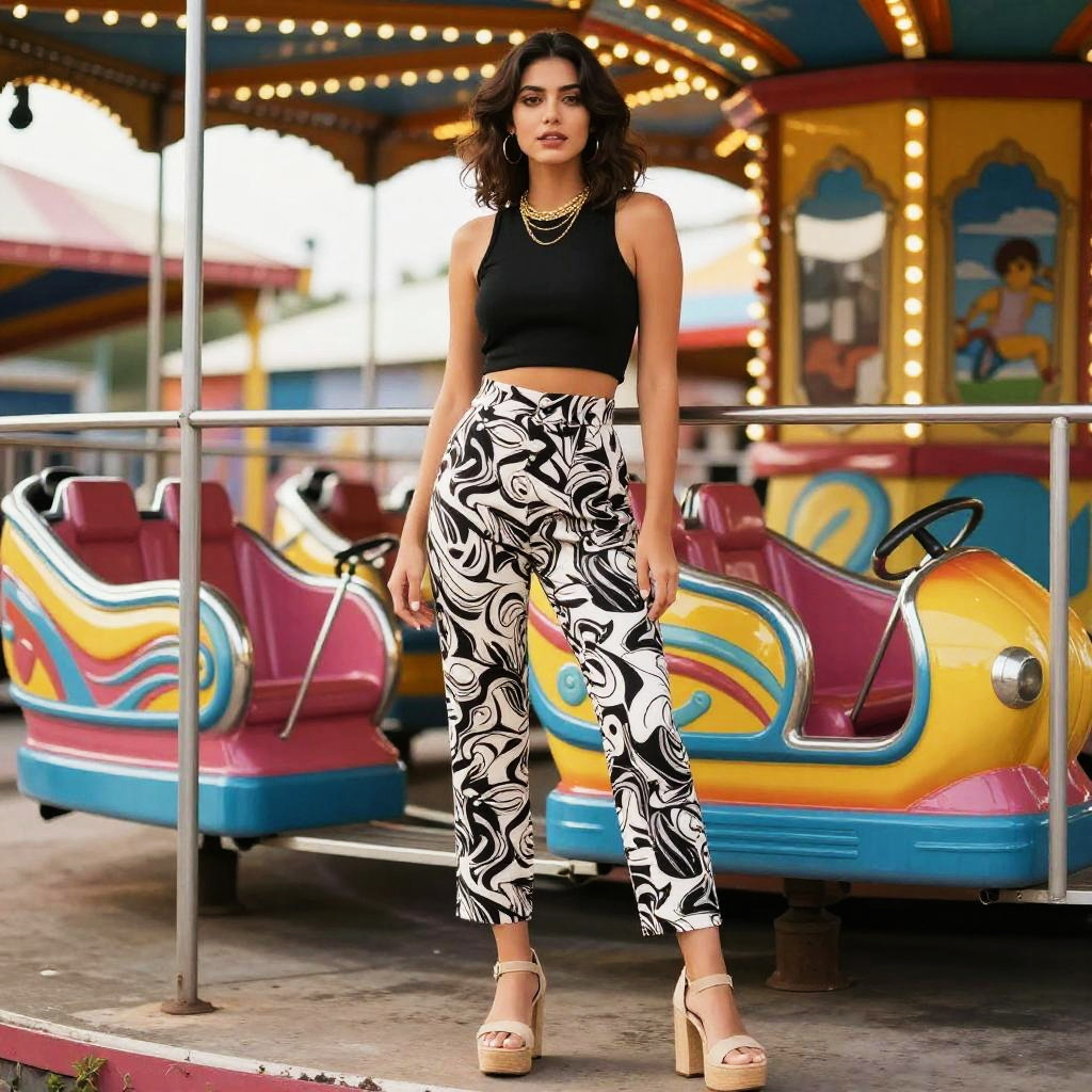 1980s Street Style Woman at Amusement Park