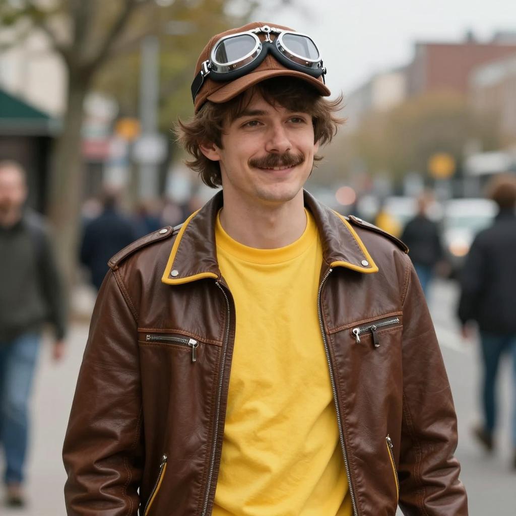 A man with light brown hair, slightly messy, blue eyes, and a thin mustache. His gaze is directed to the right, with a slightly furrowed brow. Background is blurred light gray. His skin is fair, and he has a subtle shadow on his left cheek.