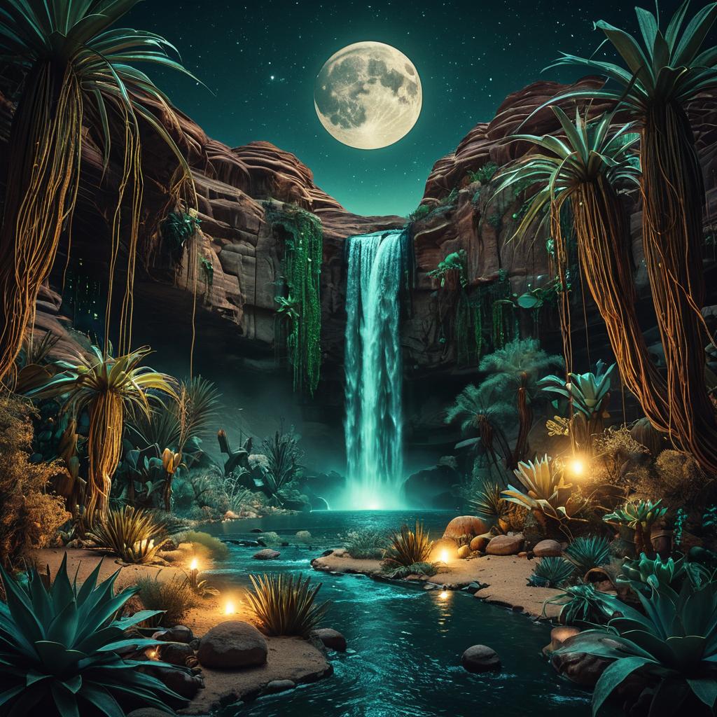 Mystical Avatar-Inspired Tropical Oasis Scene