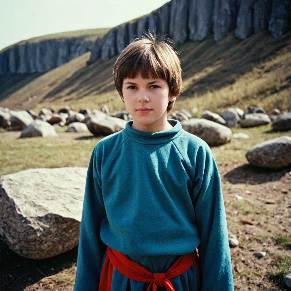 Funny russian costume,solo, male focus, 1boy, long sleeves, standing, short hair, looking at viewer, realistic, closed mouth, brown hair, arms at sides, rock, outdoors