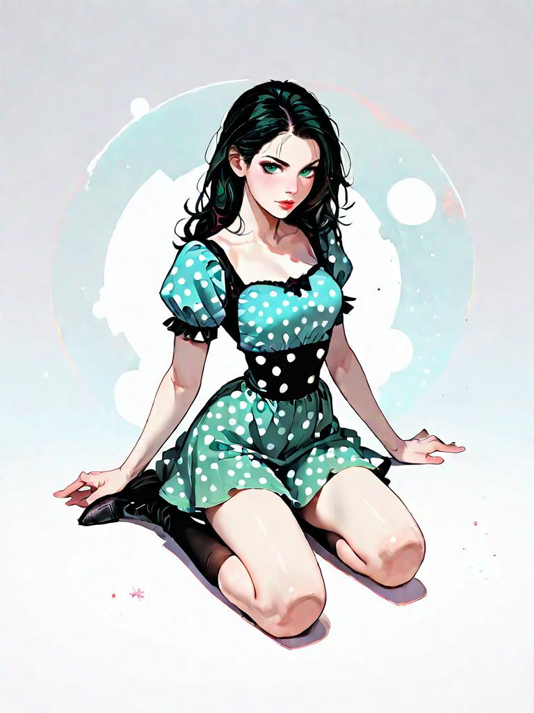 Young Woman in Navy Blue Dress and Cardigan