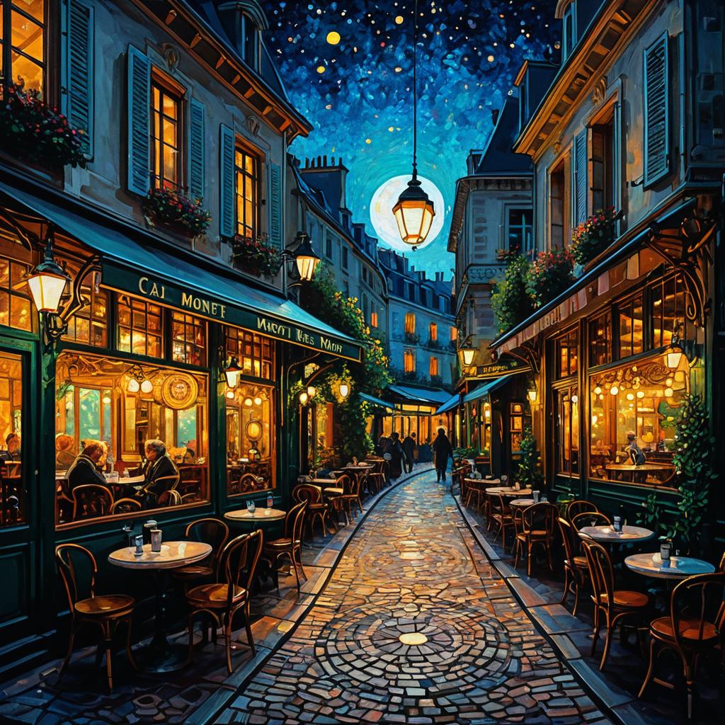 Evening at Parisian Impressionist Cafe