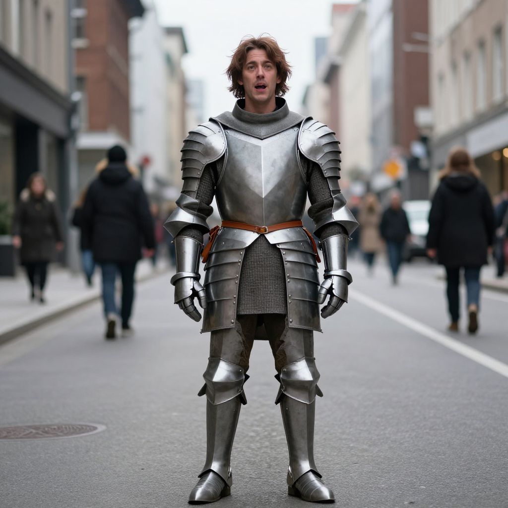 Man in Armor on City Street