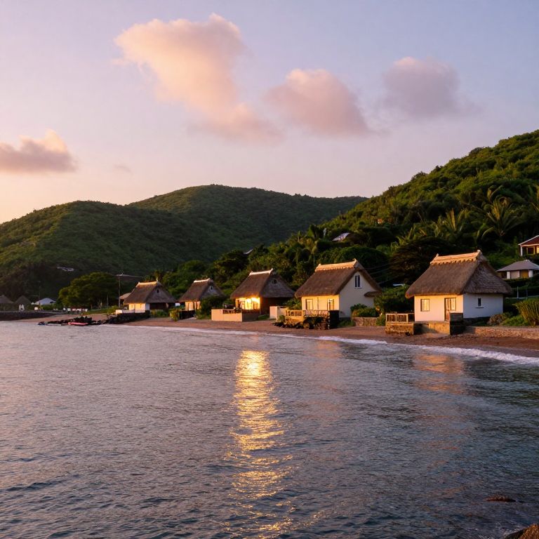 Sunset Over Coastal Village