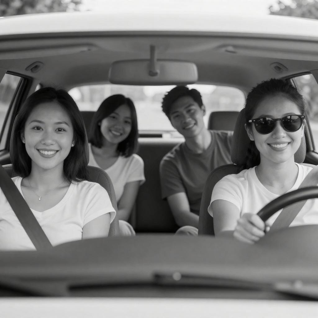 Black-and-White Photo: Couple Driving SUV