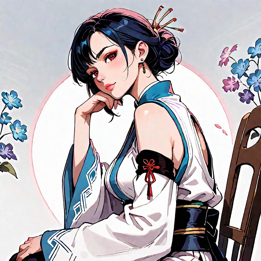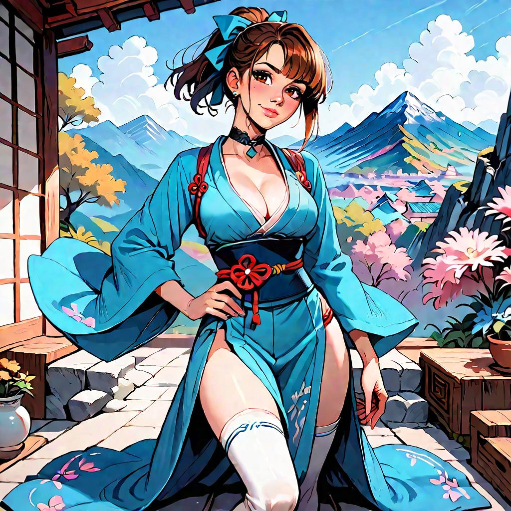 Fantasy Oni Woman in Purple Kimono