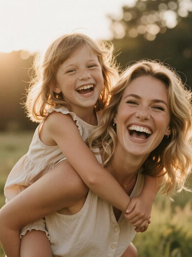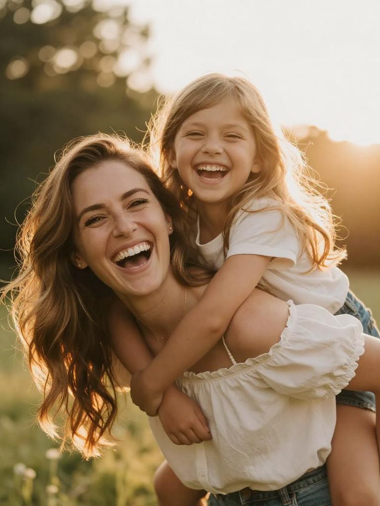 Tender Mother and Daughter Sunset Embrace