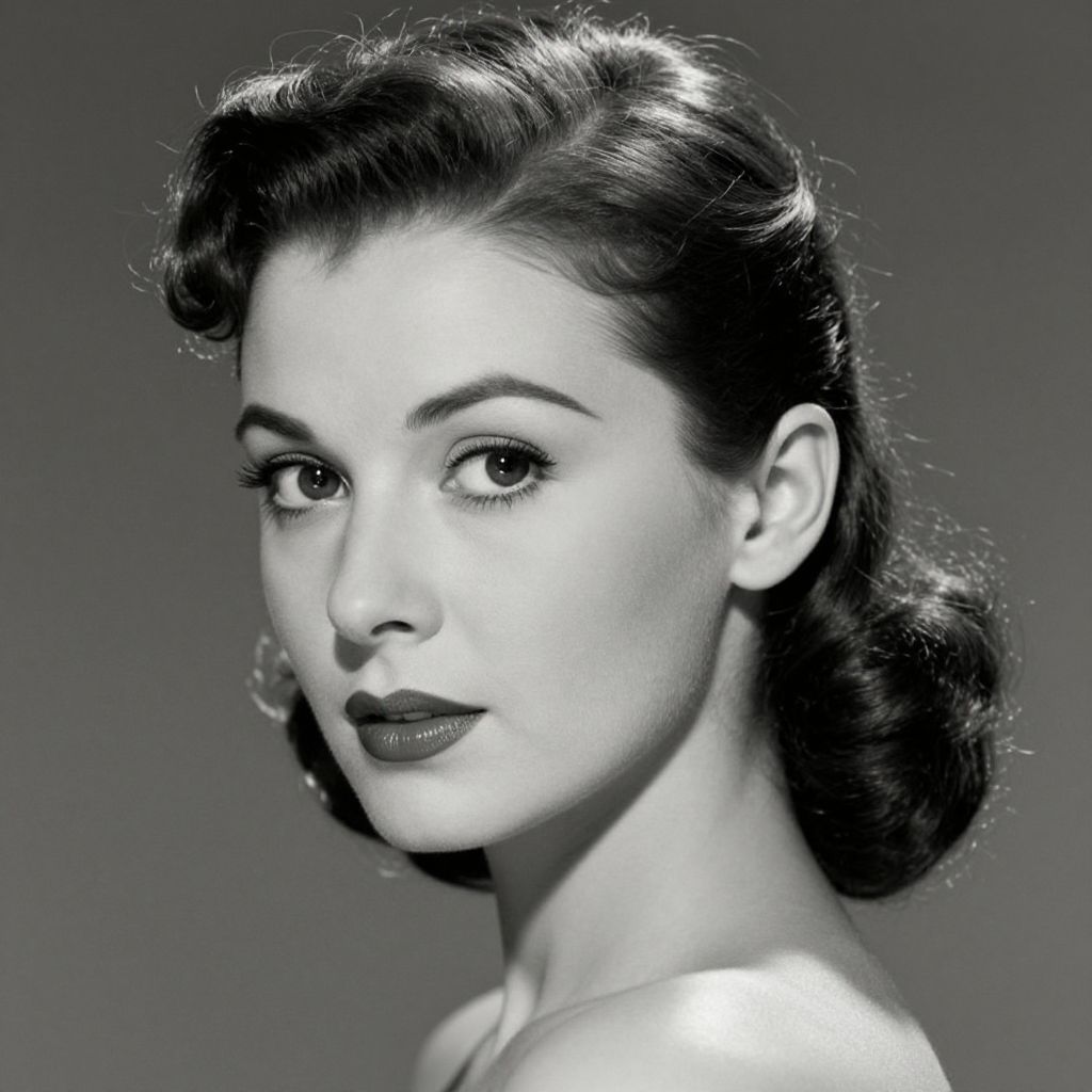 Elegant portrait of a woman with meticulously styled hair, captured in monochrome tones, exuding a timeless 1940s aesthetic.
