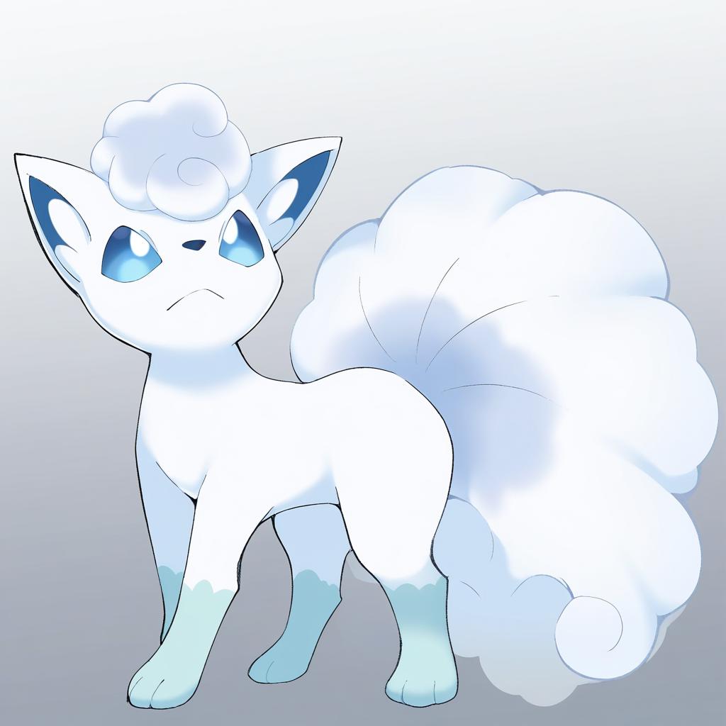 Alolan vulpix, pokemon, no humans, fox ears, fox tail, blue eyes, short hair, white hair, pokemon (creature), white fur, two-tone fur, body fur, by artist kippuru, leet