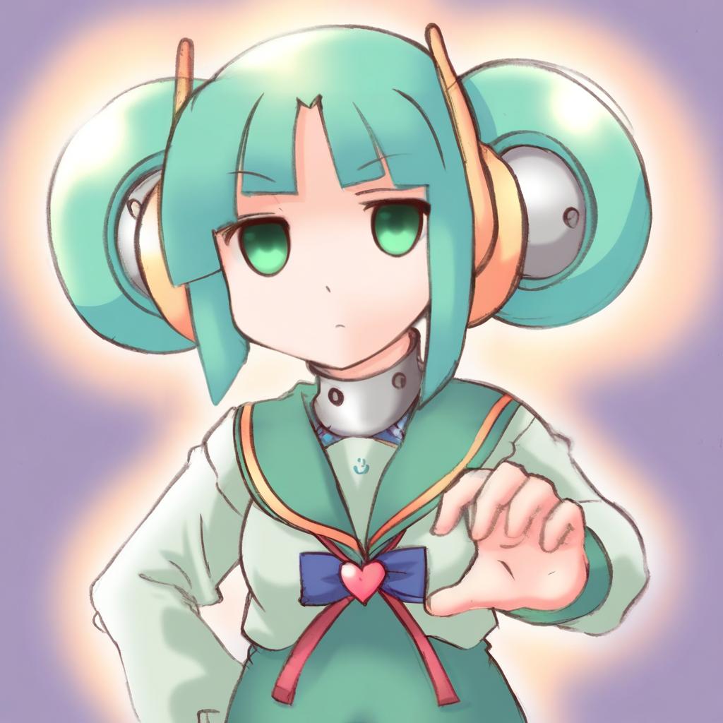 Multi (to heart), to heart (series), 1girl, robot ears, green eyes, short hair, green hair, serafuku, serafuku, long sleeves, android, by artist hadashi no kenji, leet