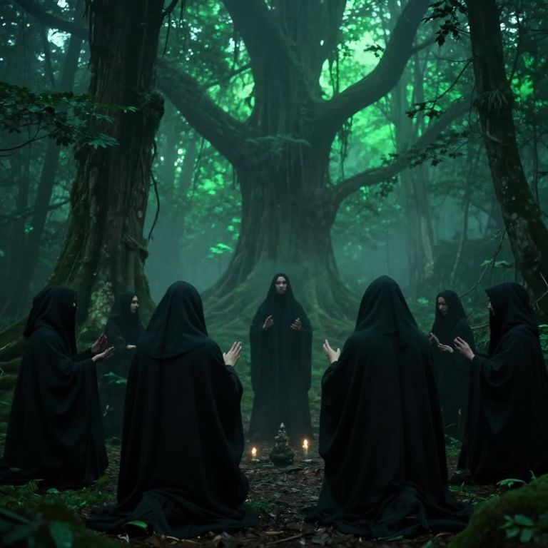 A hauntingly surreal digital artwork depicts a procession of hooded figures marching silently through a misty field of golden wheat, their forms blending seamlessly with the eerie atmosphere as they approach towering grain silos, evoking a cyberpunk-inspired narrative where sound is metaphorically harvested like grain.
