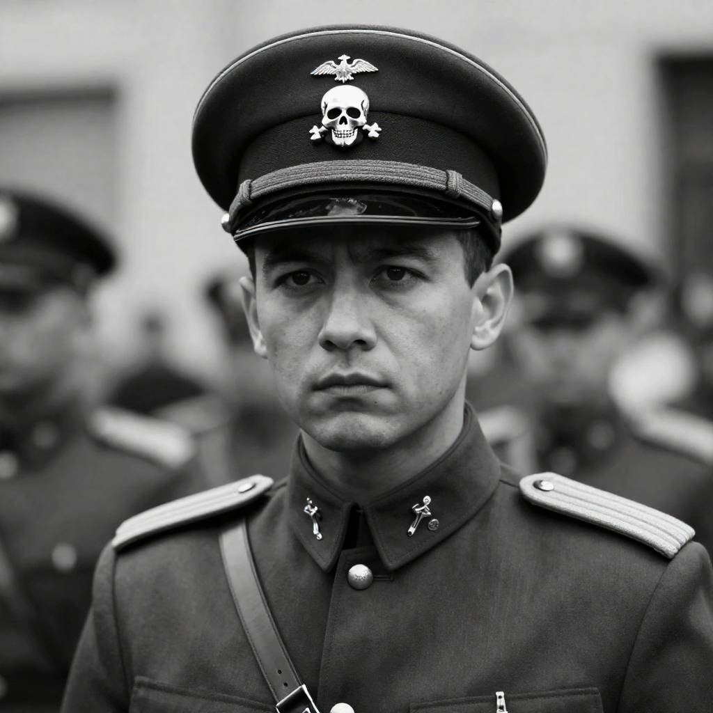 Serious Soldier in Leather Jacket Portrait