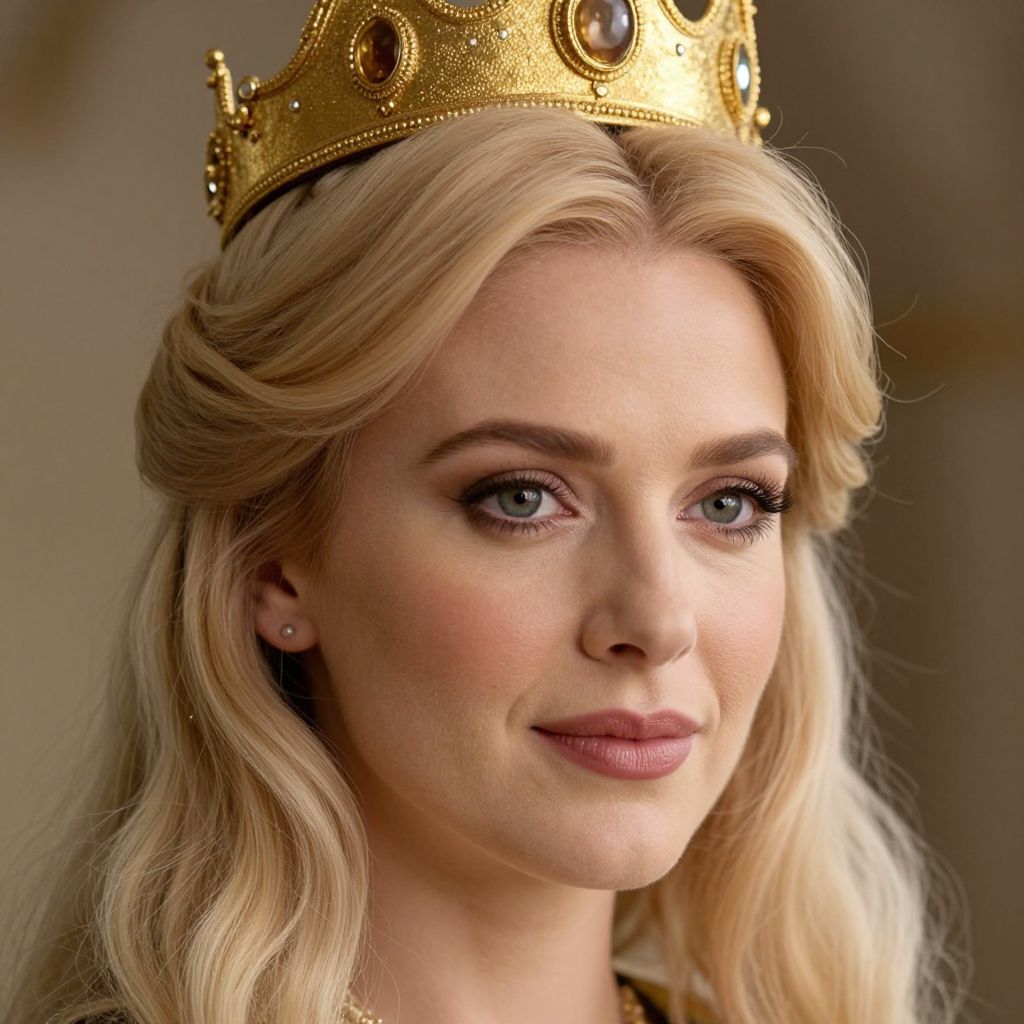 Queen Anna Cosplay, a close up of a woman with a crown on her head