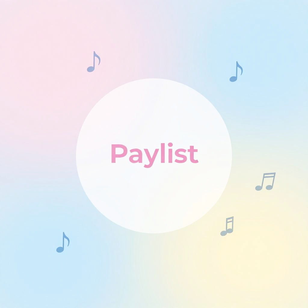 Random playlist cover design with a minimalist style, combining geometric patterns, scattered music symbols, and soft gradients in pastel pinks, blues and yellows, creating a calming yet intriguing visual that represents a versatile and unpredictable music selection.