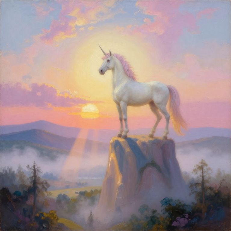An awe-inspiring oil painting captures a majestic mythical creature soaring above a verdant valley at twilight. The creature's resplendent wings are spread wide as it casts an ethereal glow across the serene landscape below, blending elements of fantasy with natural beauty. The unique aerial perspective draws viewers into the scene from the vantage point of the celestial creature itself, evoking feelings of wonder and a sense of magic in this breathtakingly composed portrait of nature and mythical splendor.