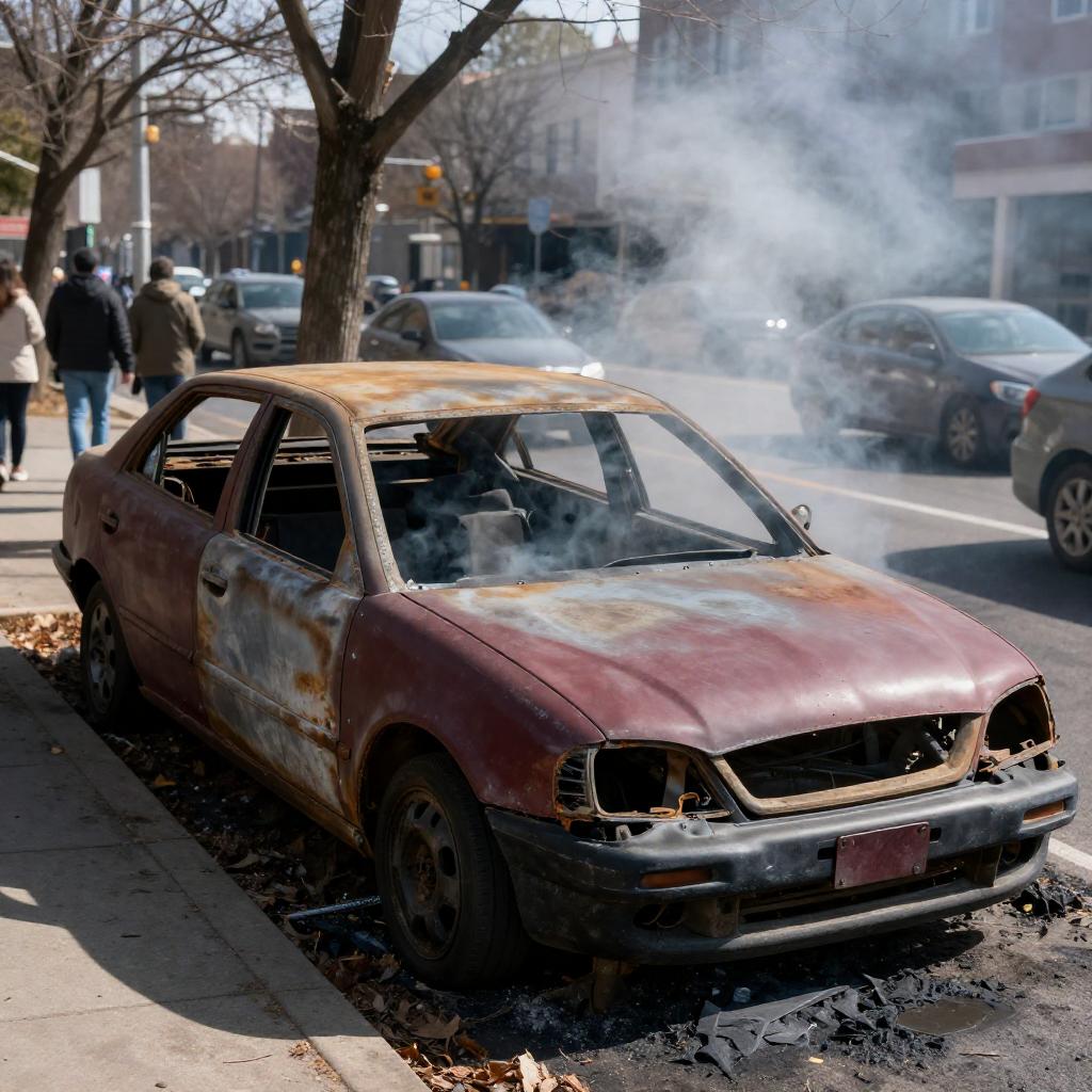 Burnt Abandoned Car on Urban Street