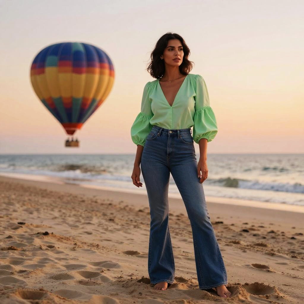 Chic Hourglass Woman at Dusk Beach