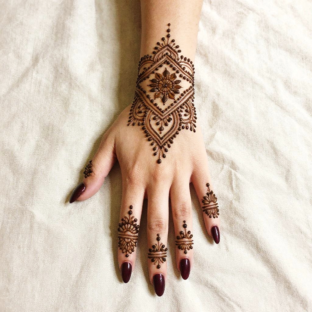 Henna-Adorned Hand on Cream Fabric