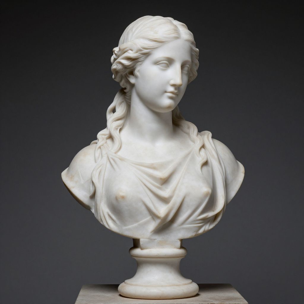 Italian Marble Bust of Young Woman