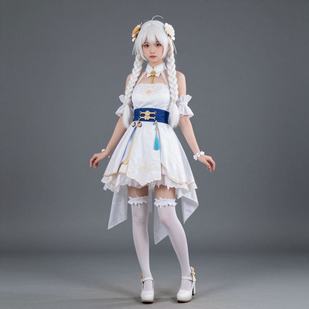 Elegant White-Haired Doll Costume