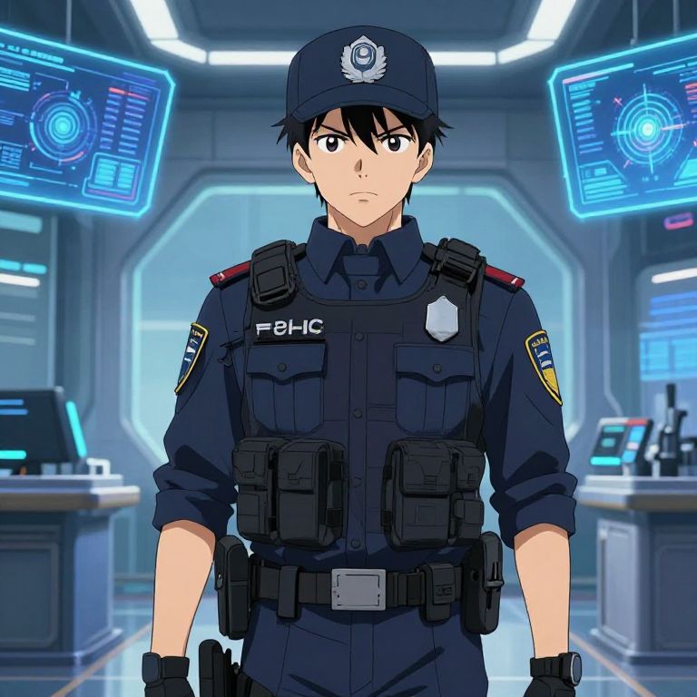 Anime-style digital drawing of a serious young male soldier in green uniform, helmet, and holding a radio, with a blurred indoor background.