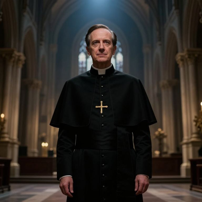 Stoic Silver-Haired Cleric in Gothic Cathedral