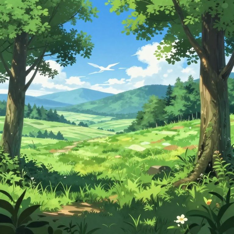 Digital illustration of a dense, lush green forest with towering, jagged rock formations rising from the center, creating a dramatic, vertical landscape. Bright,