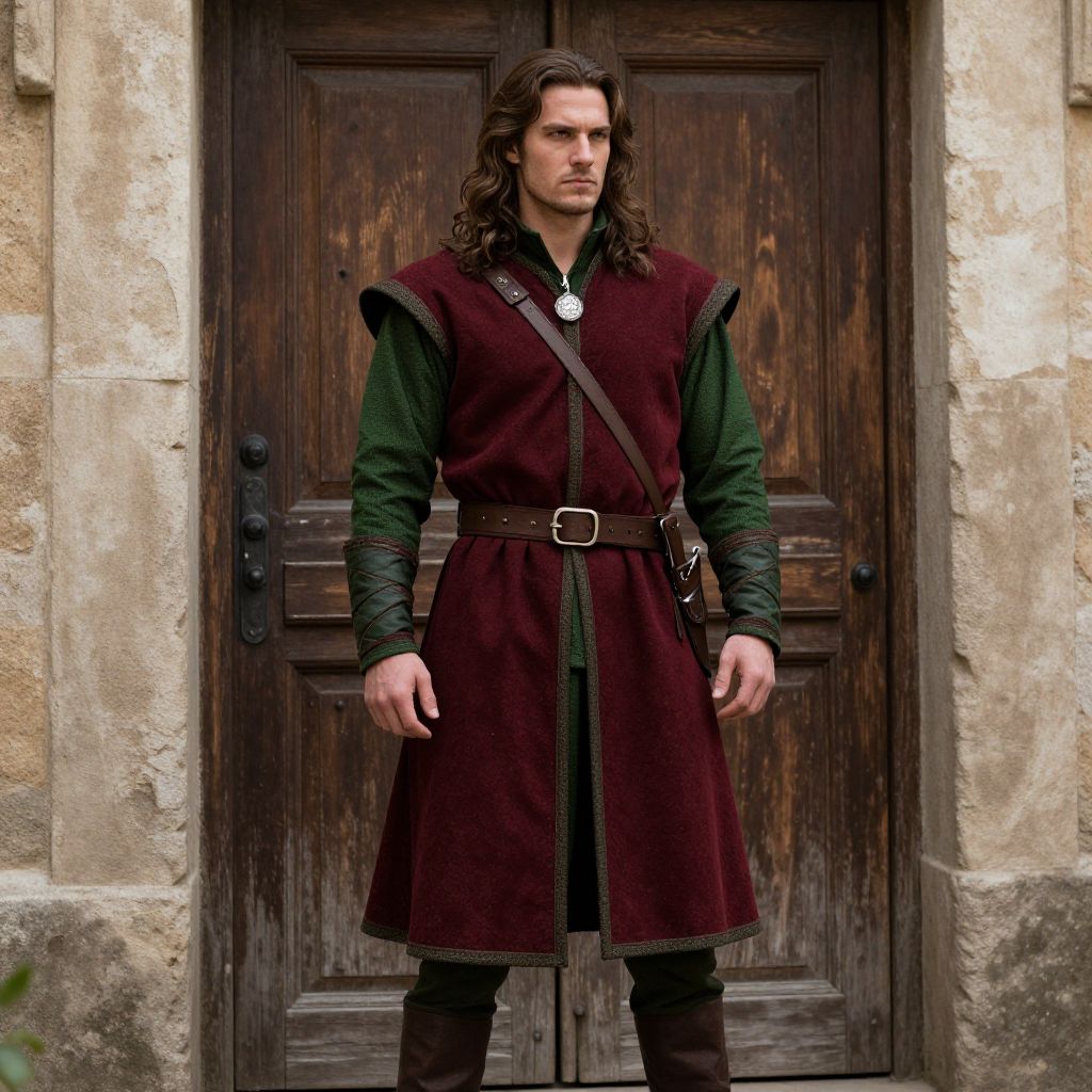 Medieval Man in Crimson and Green Costume