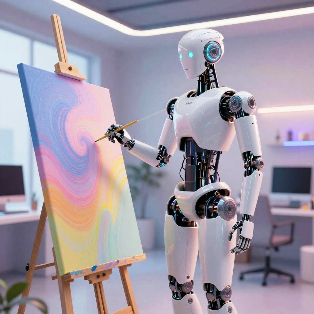 Sleek Robot Artist in Modern Studio