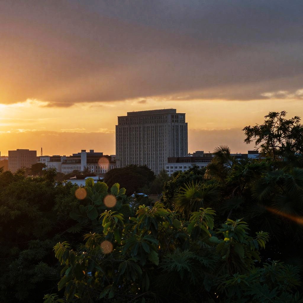 Building, city, nature, sky, sunset, tree, twilight, cinematic shot + dynamic composition, incredibly detailed, sharpen, details + intricate detail + professional lighting, film lighting + 35mm + anamorphic + lightroom + cinematography + bokeh + lens flare + film grain + HDR10 + 8K + Roger Deakins, ((cinematic))