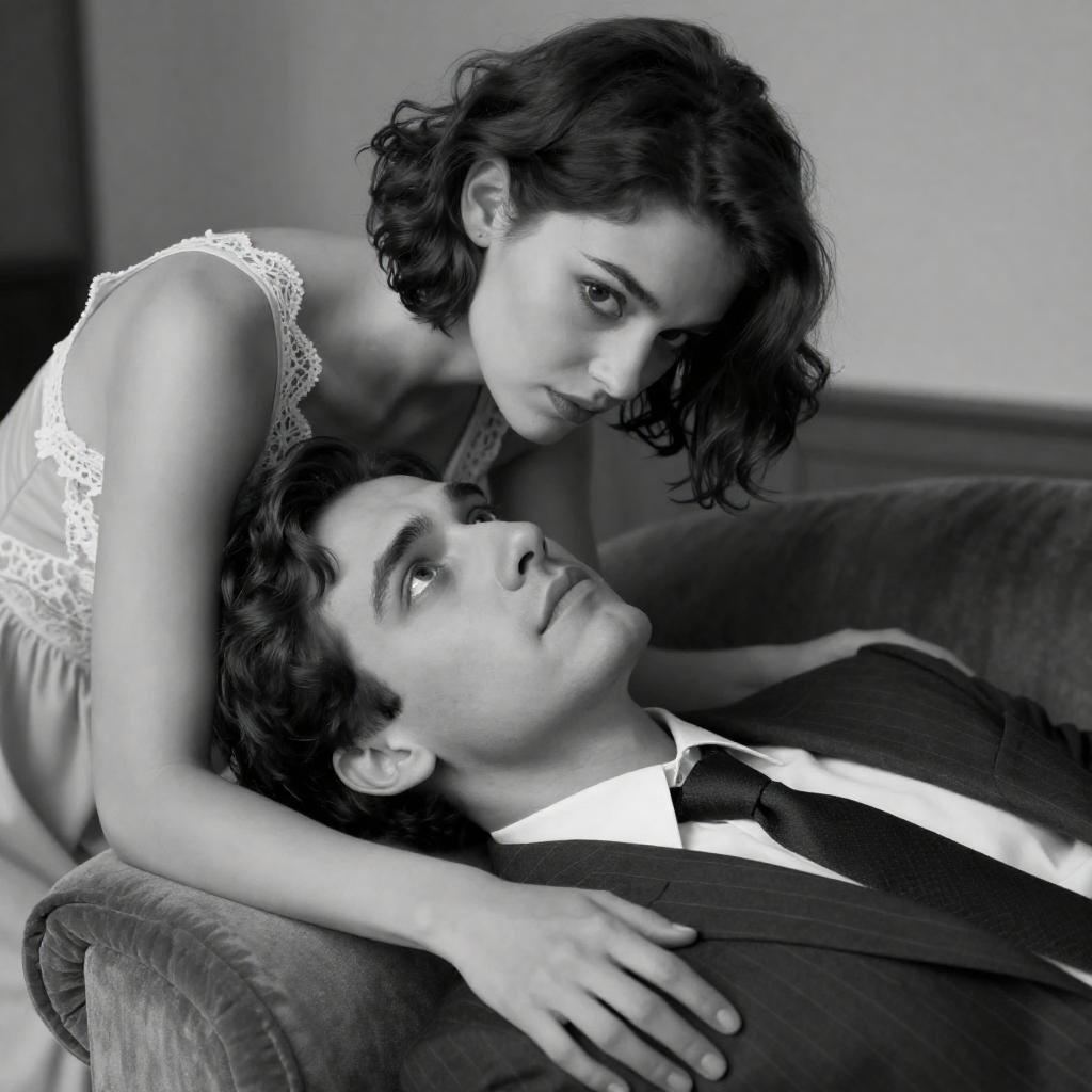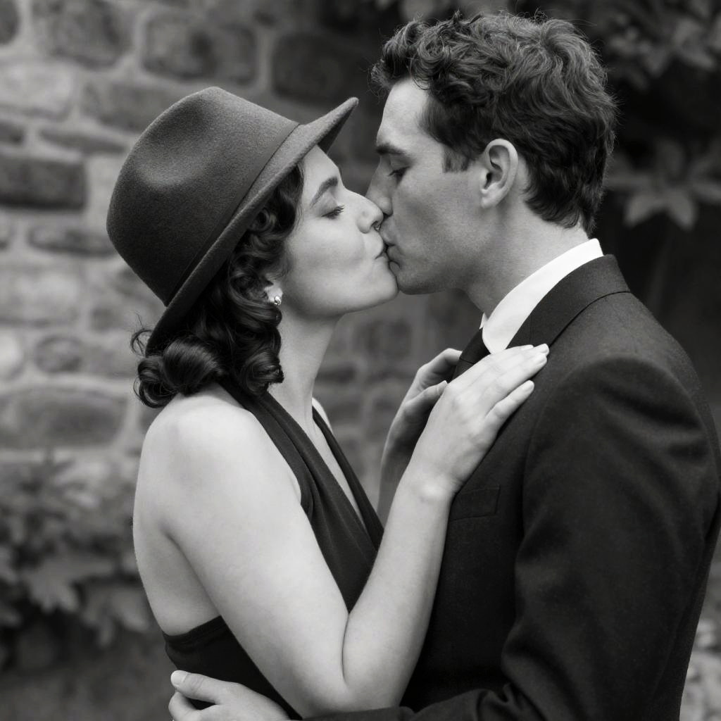 Intimate Black-and-White Cigarette Kiss