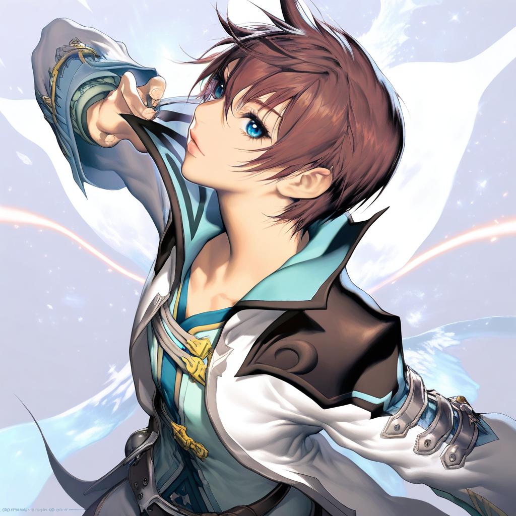 Asbel lhant, tales of (series), 1boy, blue eyes, brown hair, short hair, by artist kim hyung tae, animagine