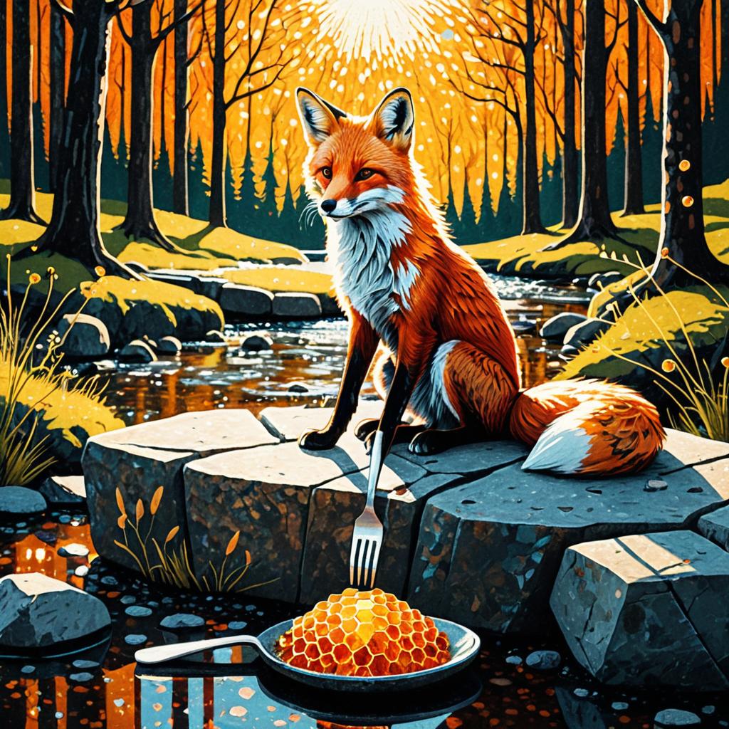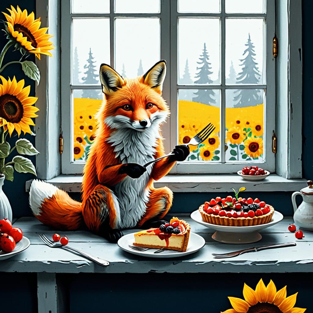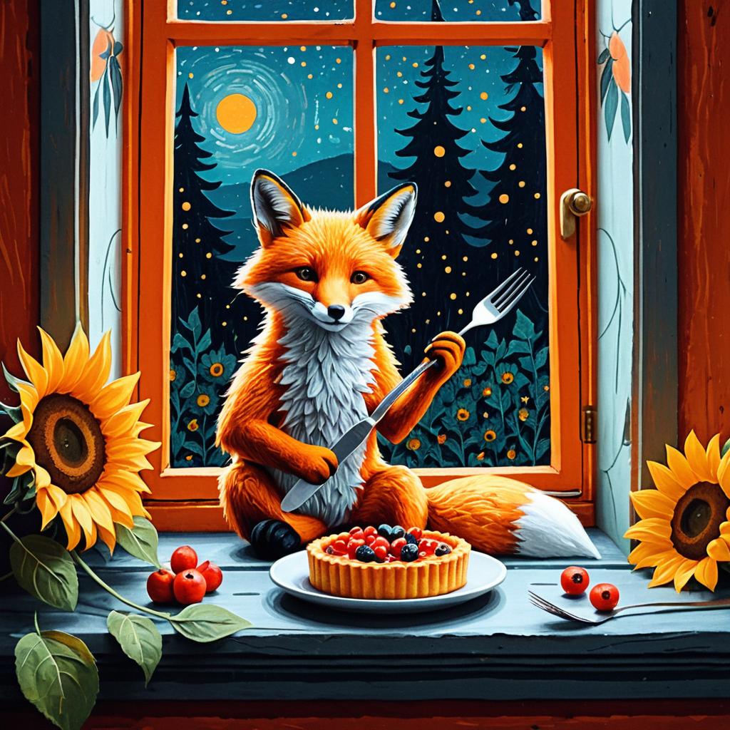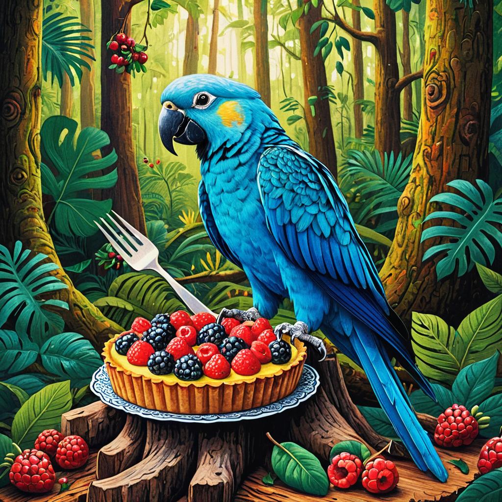 Whimsical Raccoon in Enchanted Forest with Berry Tart