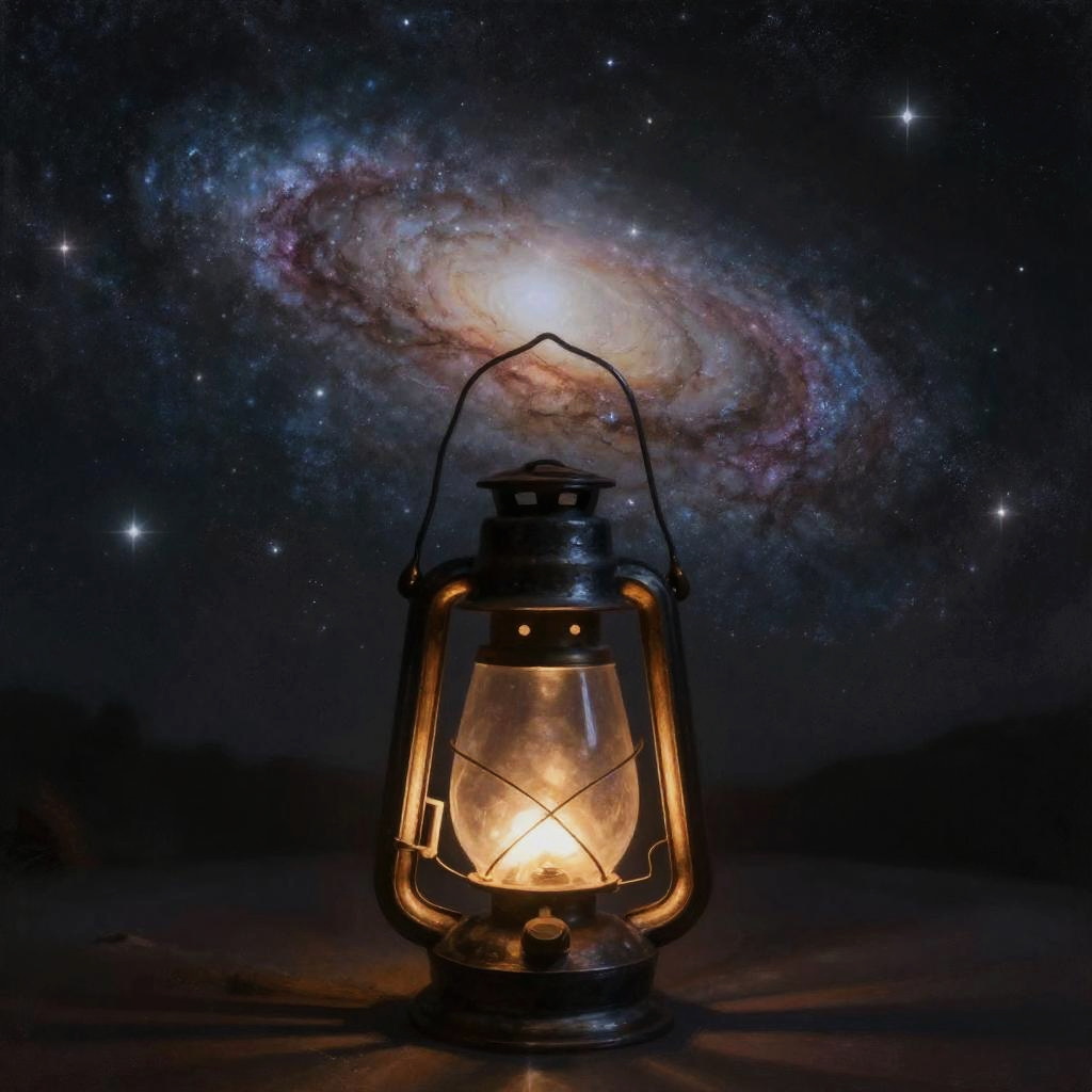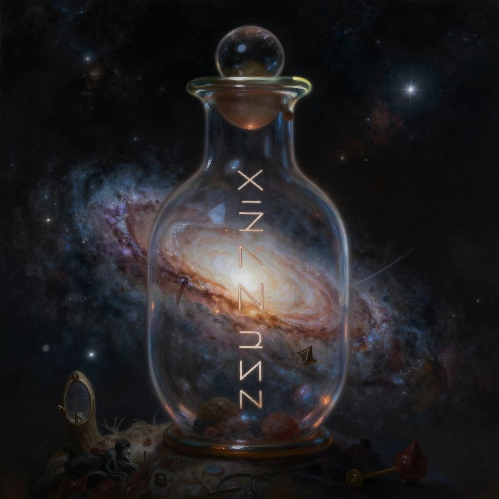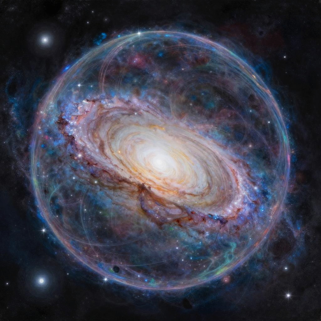 Fantasy painting by Maya Hollen of the Milky Way galaxy captured inside a magical prism, whimsical and surreal concept, high detail, soft colors, magical atmosphere