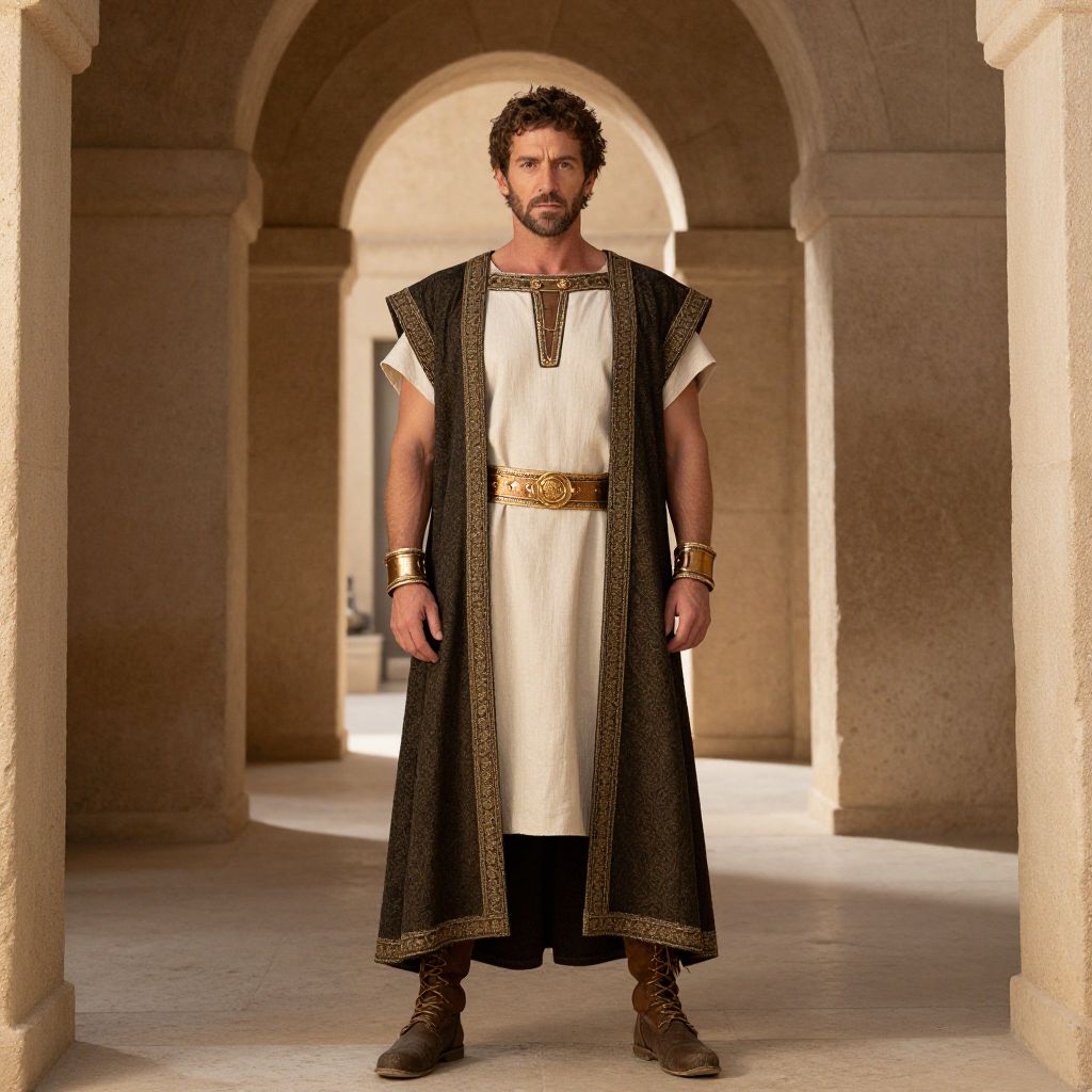 Greece Movie Costume, a man dressed in a biblical costume standing in an archway