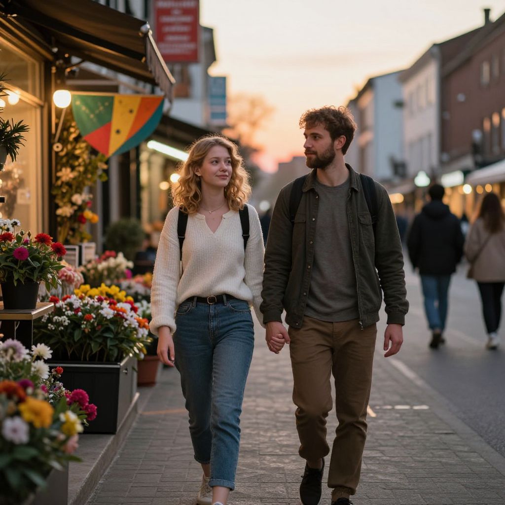 Couple Strolling Through Spring Garden