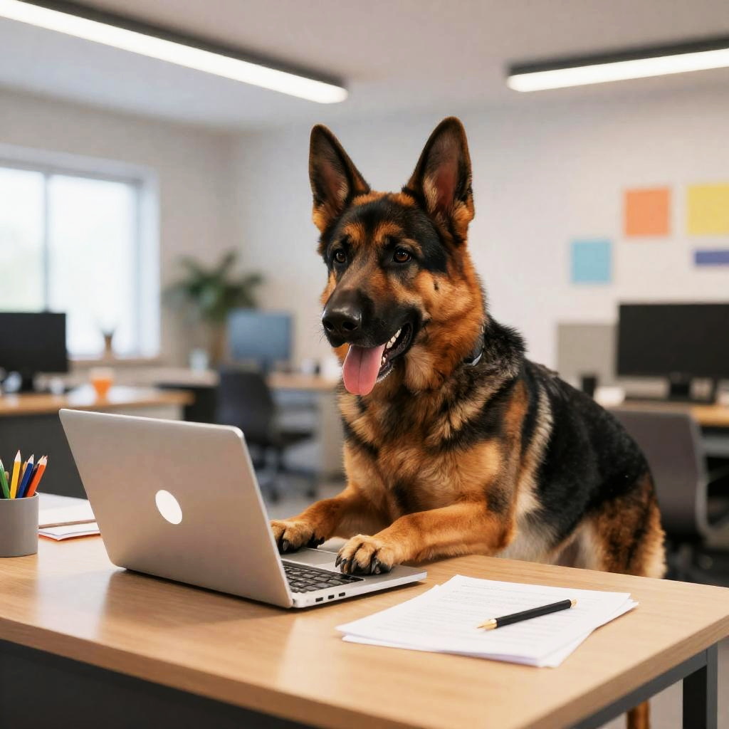 Office German Shepherd Working on Laptop