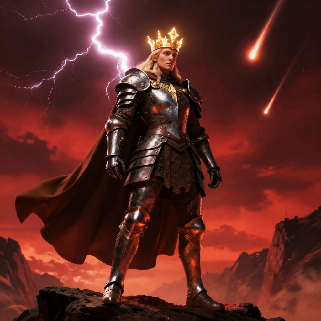 Triumphant Samurai Queen on Volcanic Cliff